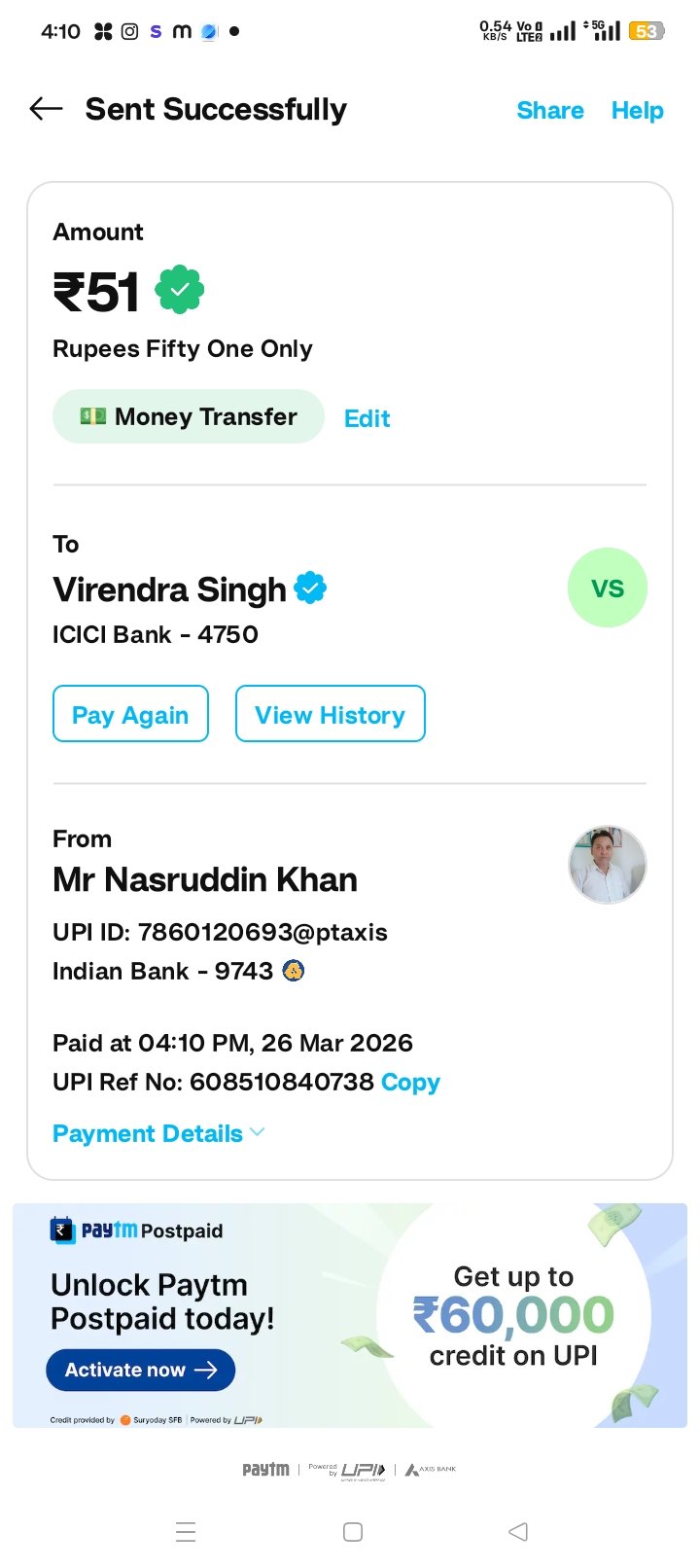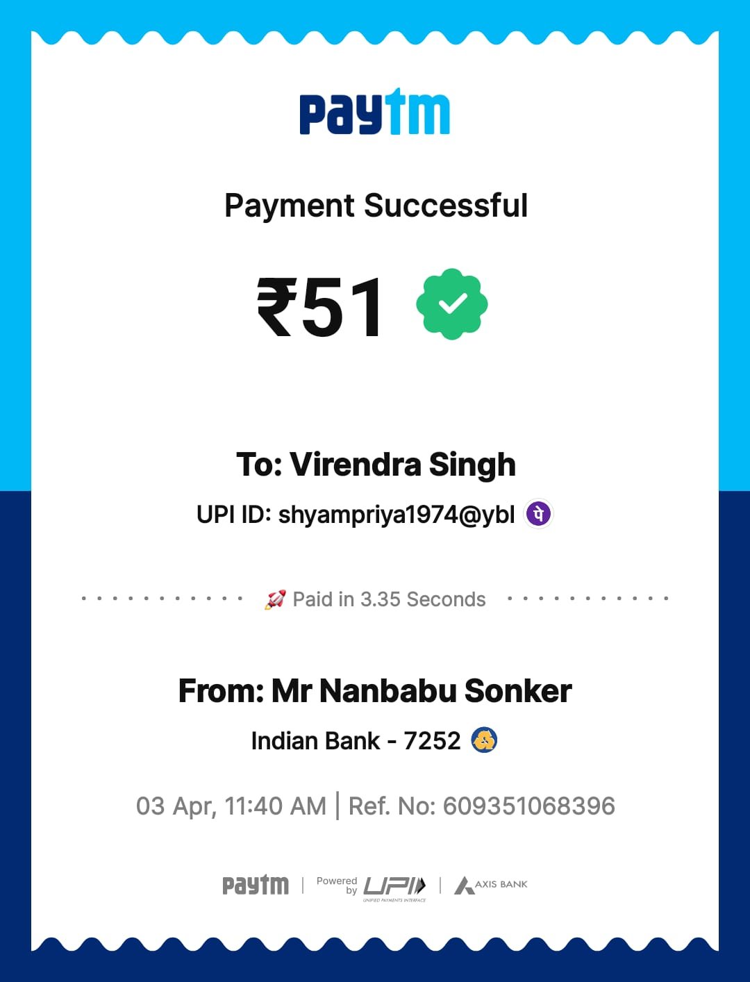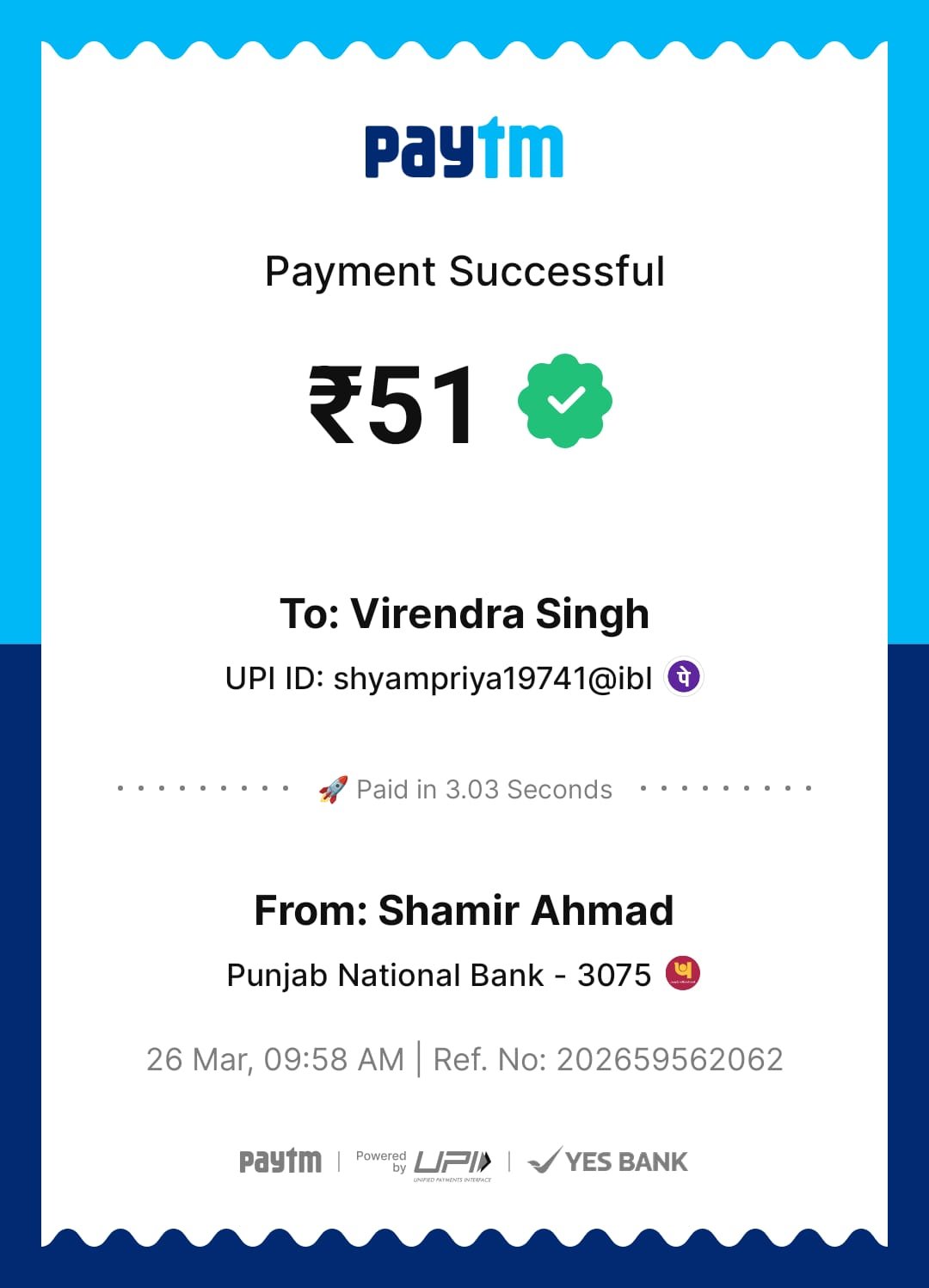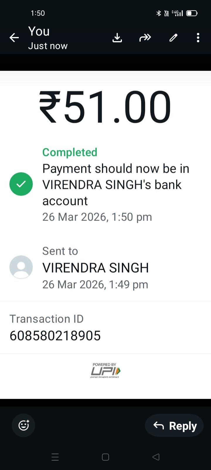 A/C Holder Name : Transaction ID : 608510840738 Teacher Mobile : 7860120693 EHRMS CODE : 824309/3181/79-5-2013-4127/2011 /09/02/2018 Amount : 50 Rs. Date : 26-03-2026