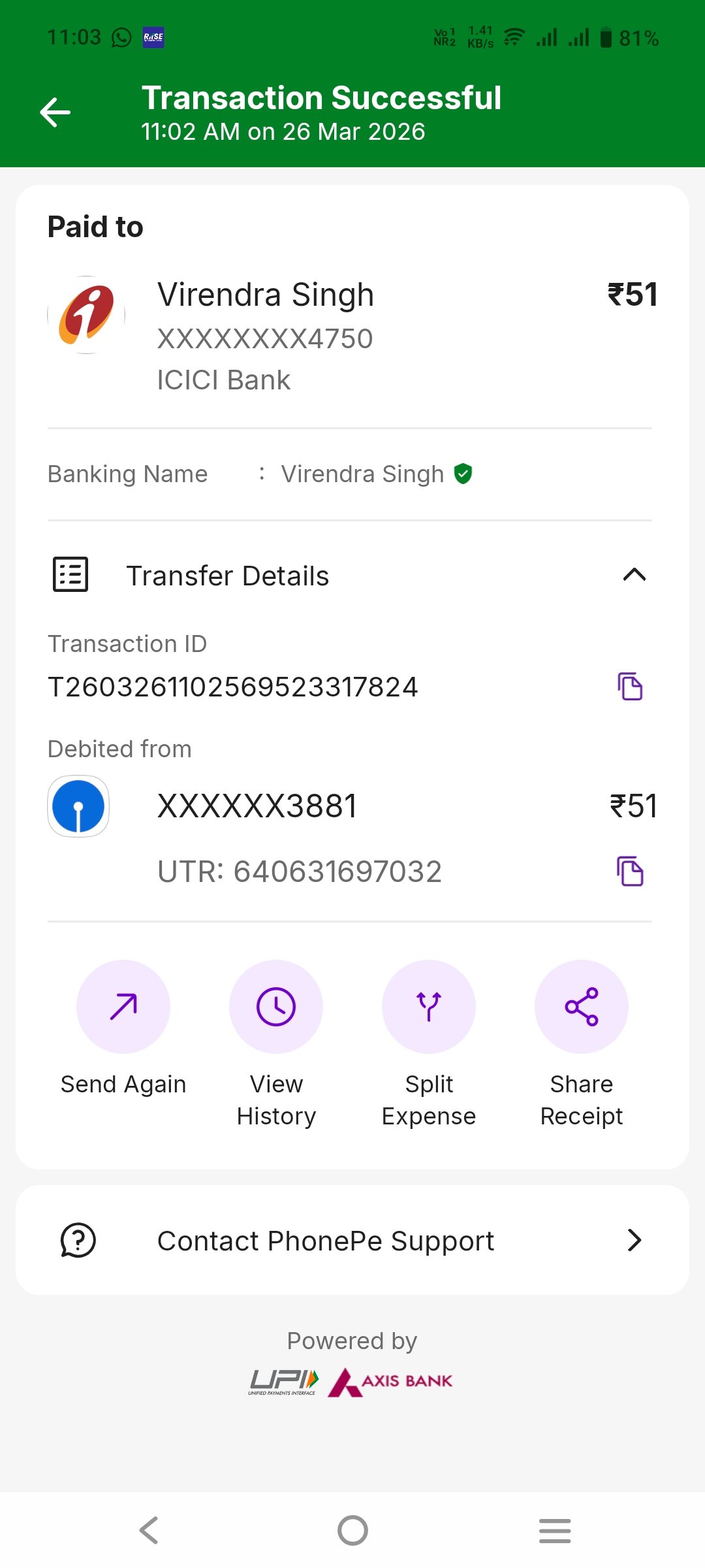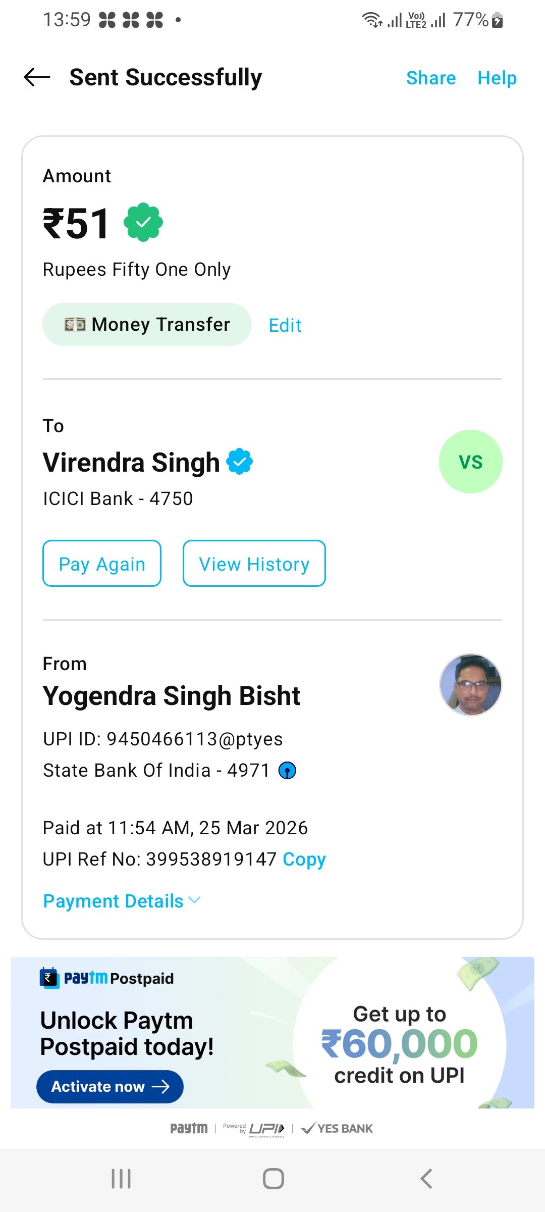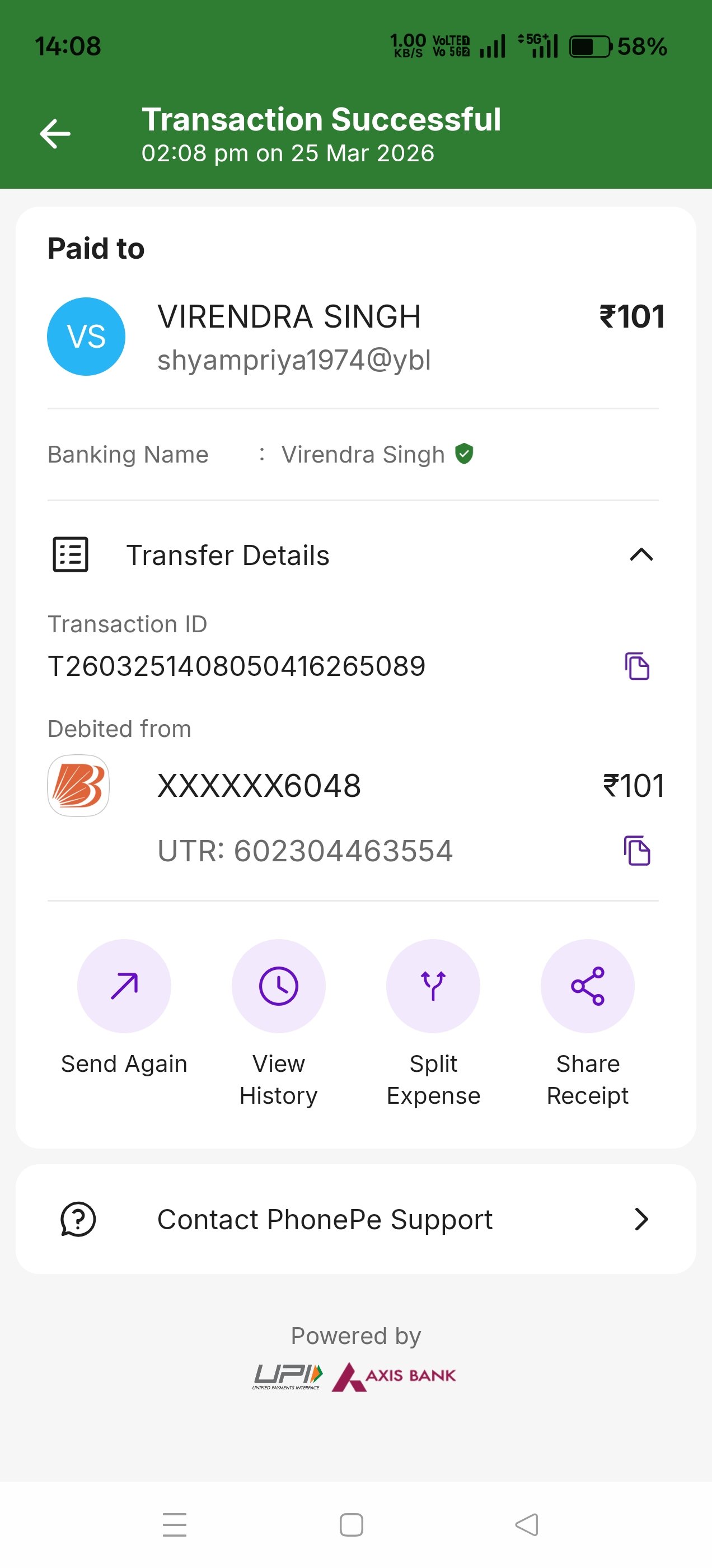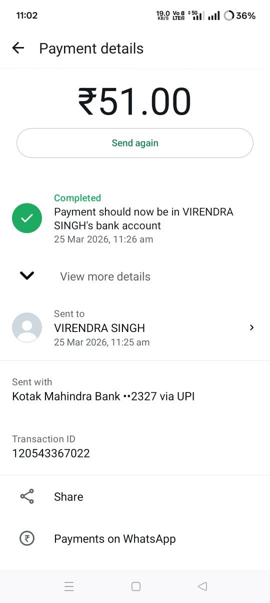 A/C Holder Name : Transaction ID : 608510840738 Teacher Mobile : 7860120693 EHRMS CODE : 824309/3181/79-5-2013-4127/2011 /09/02/2018 Amount : 50 Rs. Date : 26-03-2026