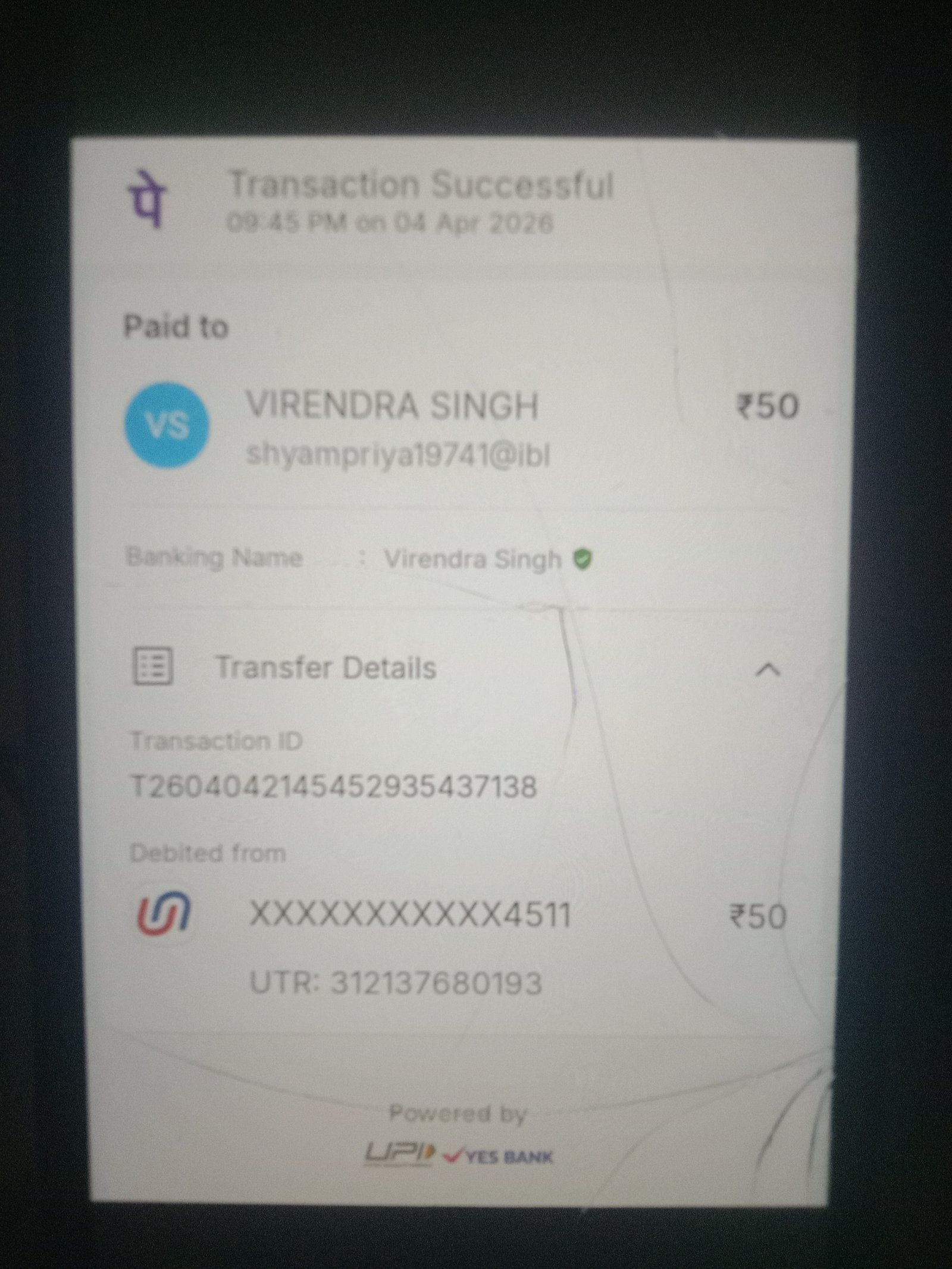 A/C Holder Name : Transaction ID : T2604042145452935437138 Teacher Mobile : 9452959488 EHRMS CODE : 193794 Amount : 50 Rs. Date : 04-04-2026