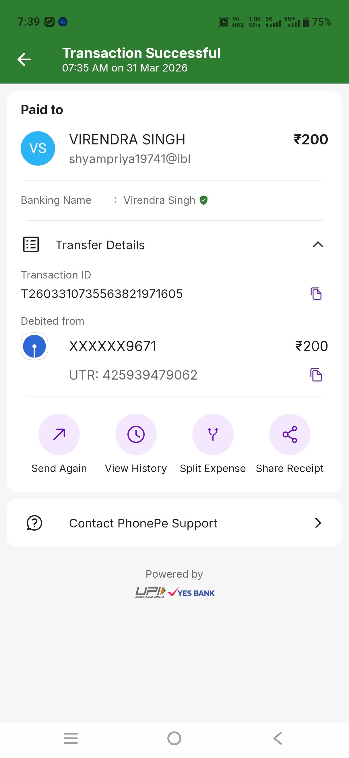 A/C Holder Name : Transaction ID : T2603310735563821971605 Teacher Mobile : 8057169625 EHRMS CODE : 899471 Amount : 200 Rs. Date : 31-03-2026